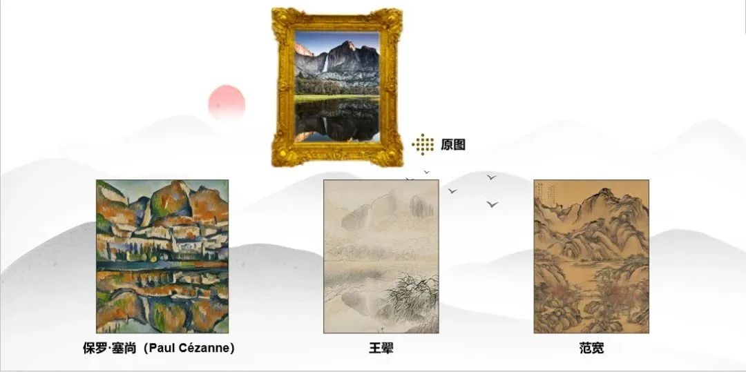 在這部作品中,我們用塞尚、王翚、范寬三位大師的氣韻再生AI模型算法,重新“繪制”立體的山水,以期彰顯中西文化中不同意蘊(yùn)的“平面性”表達(dá)。在大學(xué)美育的框架下,我們借助AI技術(shù)向大師們致敬。我們開發(fā)的“氣韻再生”大模型通過AI技術(shù),得以讓歷史上的藝術(shù)大師們在數(shù)字世界“氣韻再生”,讓他們的創(chuàng)造力在當(dāng)下的“新世界”延續(xù)。同時,我們也得以在數(shù)字世界里,讓大師們穿越到任何場景和語境中,創(chuàng)作出他們“本應(yīng)”創(chuàng)作出來的作品。