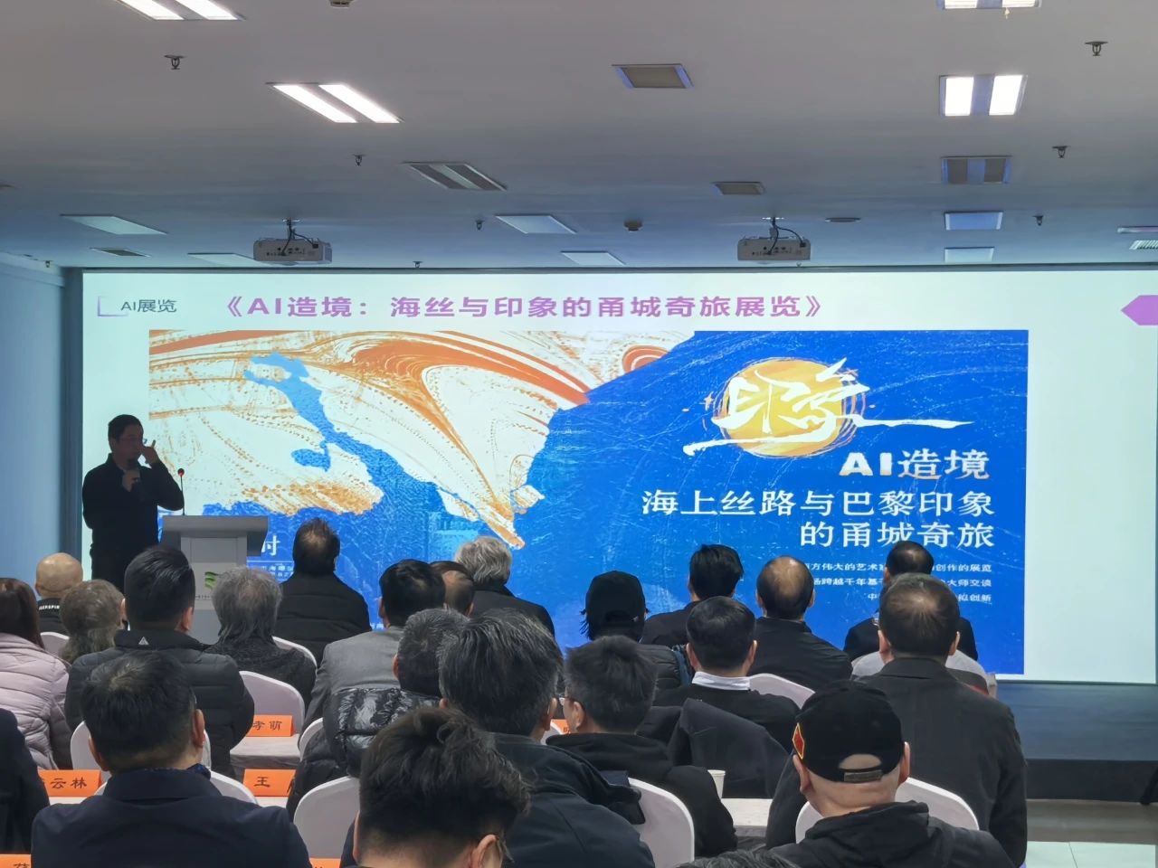 孫峰峰從“數(shù)字內(nèi)容生產(chǎn)的四大趨勢”“AI藝術(shù)創(chuàng)作的實踐”“南京大學AI美育探索”“AI藝術(shù)創(chuàng)作應用的商業(yè)化探索”4個方面,與參會人員共同探討藝術(shù)創(chuàng)作在AI技術(shù)爆發(fā)式發(fā)展大背景下的新路徑、新方法。他挑選了投石智能開發(fā)的《留法印象》《目光考古》等十多幅AI生成的新媒體藝術(shù)展品,與大家分享創(chuàng)作時的感悟和體會。孫峰峰認為,AI可以創(chuàng)作出很多沒有機會存在的作品,通過虛擬創(chuàng)新,填補如“中國畫海景”“印象派東方寫生”等在中國藝術(shù)史上的空白;AI讓我們可以用中西方偉大思想家、藝術(shù)家們的頭腦和創(chuàng)作能力去創(chuàng)作更多城市文化作品,促進不同文明之間的交流互鑒。“最重要的我想說,AI實現(xiàn)了藝術(shù)平權(quán)和科技平權(quán),讓傳統(tǒng)創(chuàng)作和展覽迎來全新的機會——把AI作品與創(chuàng)新展示方式相結(jié)合。”