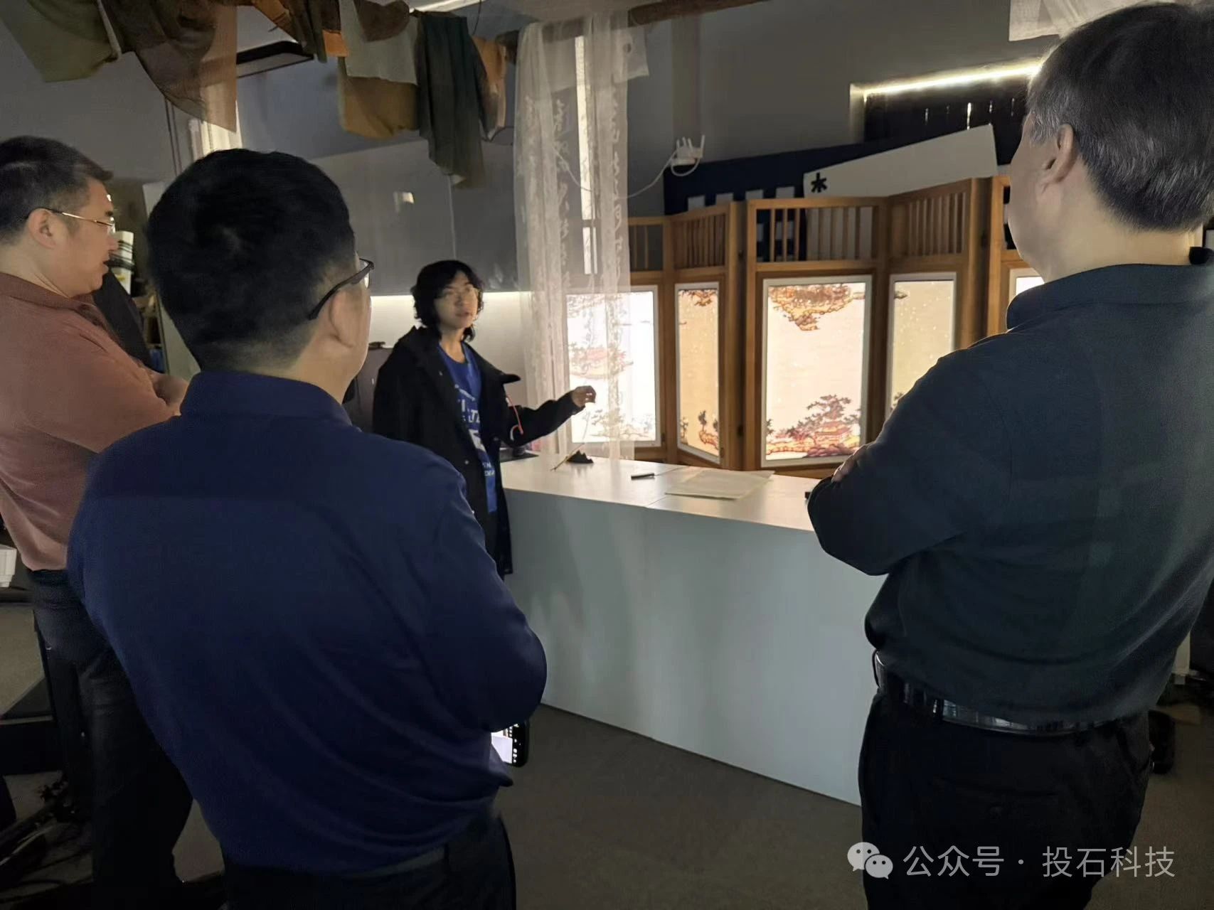 會前,考察團(tuán)一行饒有興致地參觀了投石光影藝術(shù)館。