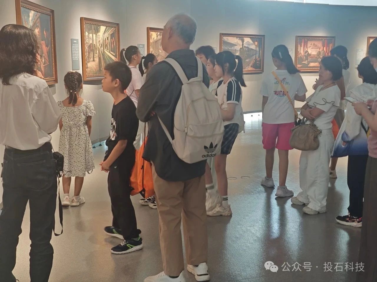 觀看展覽后,孩子們前往研學教室,參加了題為《AI油畫是如何生成的&我們怎么生成AI油畫》的AI研學講座。投石AI老師從《故宮三部曲》人工智能藝術(shù)大展的AI油畫生成技術(shù)路徑與實際應用場景中AI的使用技巧兩個維度,為孩子們生動風趣地講解了人工智能油畫這個新時代話題。