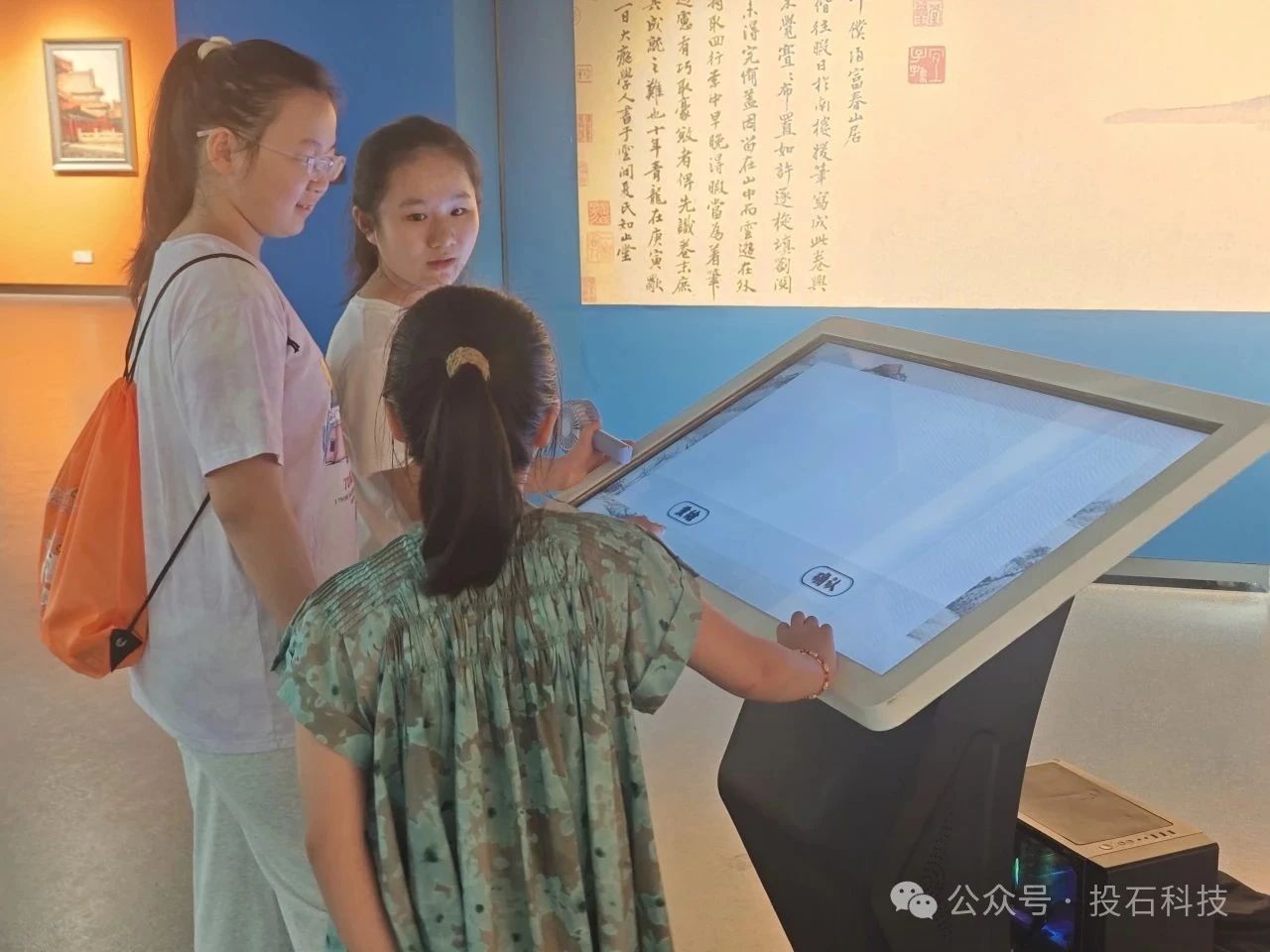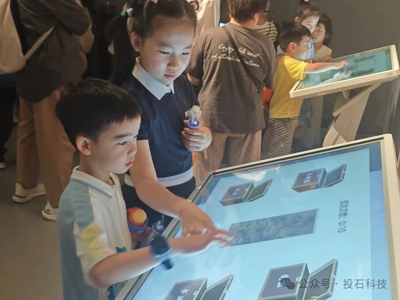 展廳內(nèi)的交互裝置同樣讓孩子們驚嘆不已?!稏|方時報》復古報紙機令孩子們爭相打卡;文物分類大挑戰(zhàn)前,孩子們競相體驗,爭當“優(yōu)秀文物學家助理”;西遷雷達墻旁,孩子們細細聆聽西遷路上那些可歌可泣的故事;文物共舞前,孩子們揮動雙臂,看到翠玉白菜與自己揮手共舞,臉上現(xiàn)出發(fā)自內(nèi)心的歡喜;《富春山居圖》AI共創(chuàng)裝置旁,孩子們用稚嫩的雙手繪出山水輪廓,經(jīng)AI繪畫后黃公望風格山水躍然紙上;《新蘇州繁華圖》長卷旁,孩子們細心繪畫,讓自己的小船與藝術(shù)家的創(chuàng)作一起繪成屬于自己的蘇州繁華。