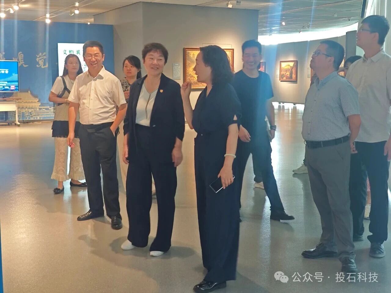 葉美蘭工作室一行還體驗了展廳內(nèi)各種交互裝置,故宮大師數(shù)字人、西遷雷達(dá)觸摸墻、紫禁城嗅覺檔案、墨影隨行AI共創(chuàng)裝置等互動裝置。領(lǐng)導(dǎo)們對此次展覽展出的交互裝置和投石的交互設(shè)計實力表示認(rèn)可,給予了充分肯定。