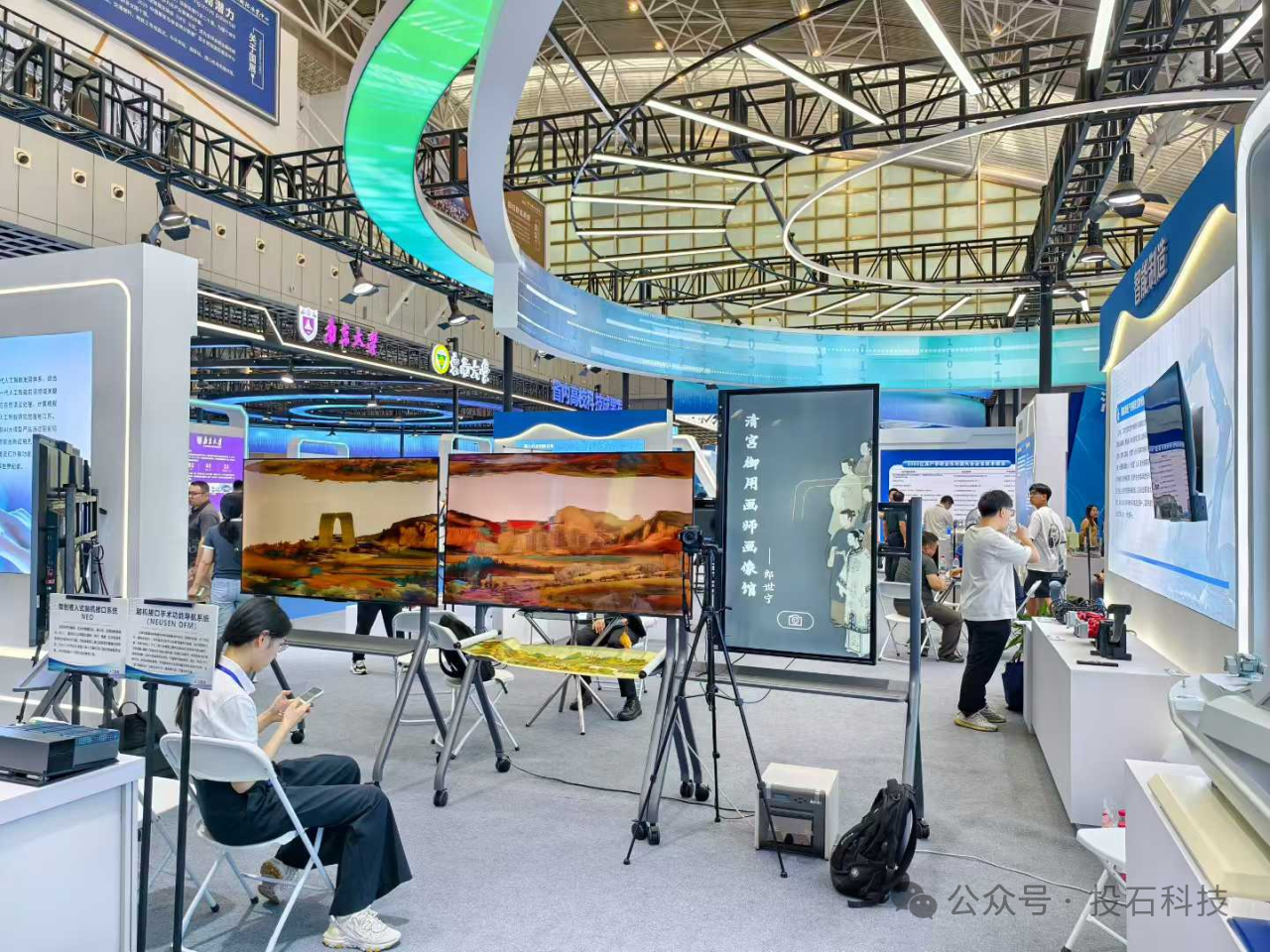 投石智能攜產(chǎn)學(xué)研成果“氣韻再生”AI繪畫大模型賦能的“AI郎世寧拍照機(jī)”與《現(xiàn)代蘇州繁華圖》AI山水長(zhǎng)卷參展,展示了投石智能在產(chǎn)學(xué)研領(lǐng)域的重要成果。