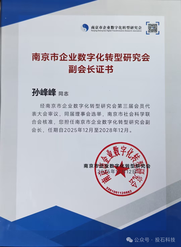 孫峰峰當(dāng)選南京市企業(yè)數(shù)字化轉(zhuǎn)型研究會(huì)副會(huì)長(zhǎng)